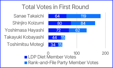 Analysts point to her strong base of support among LDP rank-and-file members and the backing of party heavyweight Taro Aso. In the first round, Takaichi commanded roughly 40% of party members’ votes, outperforming rivals among local LDP chapters. Her widespread appeal to the conservative grassroots, amplified by an active social media campaign, helped offset more divided support for moderate candidates.